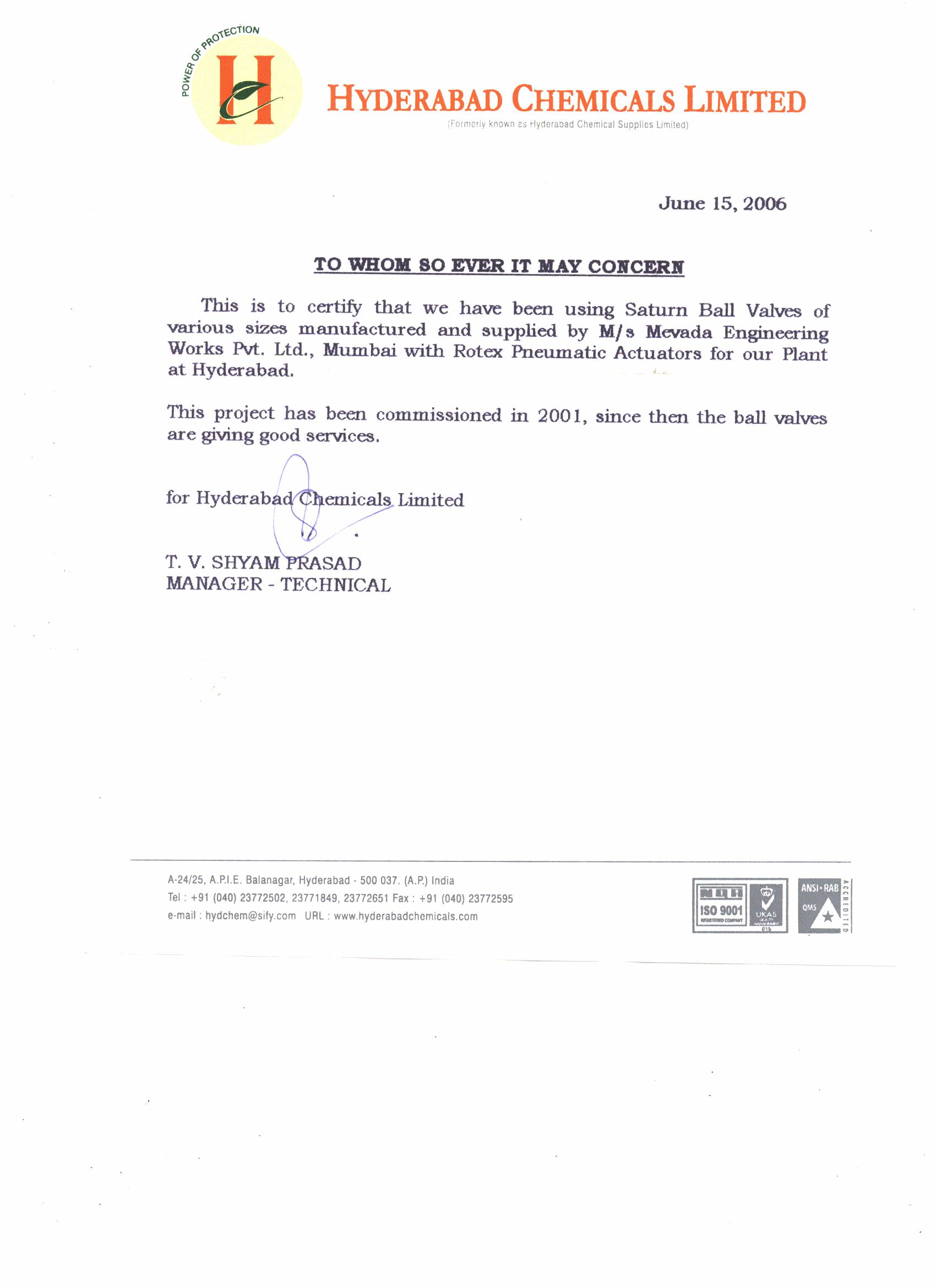 Hyderabad Chemicals Limited